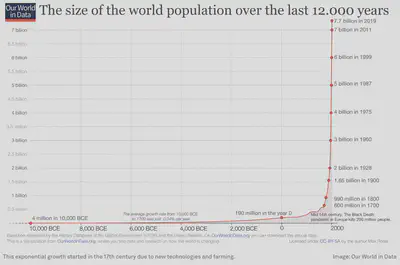 Since the rise of settlements, the human population has grown exponentially. At the same time, specialization increased dramatically. As societies became more complex, simple bartering systems were no longer efficient, and money emerged as a more practical solution for trade. (Maybe future add: history of money.)